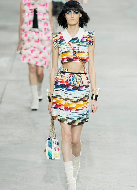 Pinggang yang digarisbawahi, bantalan lutut dan sepatu dengan kecepatan rendah - ini diingat oleh koleksi Karl Lagerfeld, desainer utama Chanel. Beraksen dengan potongan, warna, tas pinggang, pinggang tampak luar biasa elegan, dan kombinasi berbagai gaun putih dan hitam, dihiasi dengan kilauan dan batu dengan sepatu elegan fantastis dan bantalan lutut dalam nada pakaian, benar-benar menjatuhkan kritik dari indra mereka. Beberapa orang menyebut gaun haute couture cantik ini "nostalgia untuk masa kanak-kanak", yang lain menganggap diri mereka yang paling olahraga dari semua koleksi fashion tinggi tahun 2014.