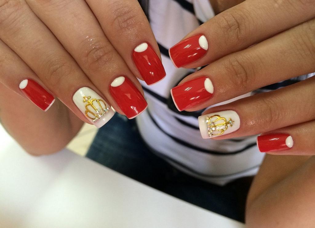 - Untuk manicure dengan lunula putih: cukup cat kuku Anda dengan pernis merah, dan ketika sudah benar-benar kering, aplikasikan lak putih di area lunula dengan kuas halus.